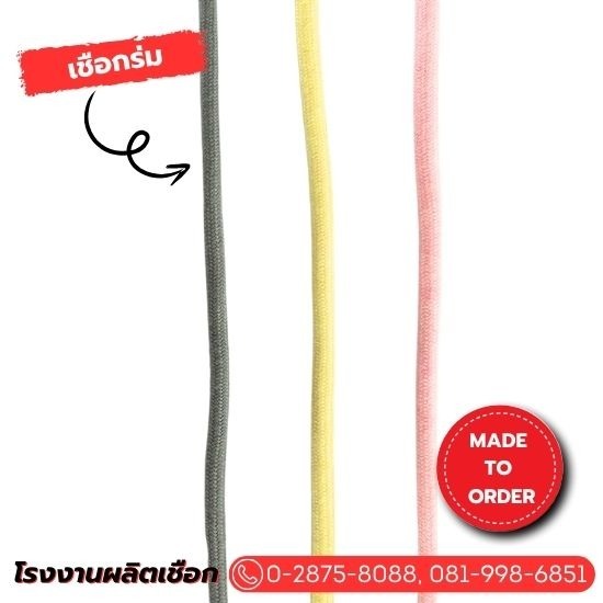 รับผลิตเชือกตามแบบ รับผลิตเชือกตามแบบ โรงงานผลิตเชือกตามความต้องการในราคาถูก เพื่อได้เชือกตามสเปคที่ลูกค้าต้องการ (Made to order)  สามารถสั่งผลิตได้ทุกแบบ ทุกขนาด ทุกสี เช่น เชือกมัดเปล เชือกมัดท้าย เชือกกางเกง โรงงานผลิตเชือกรองเท้า สายคล้องคอ สายคล้องบัตร สายกระเป๋า เชือกร่ม เชือกถัก เชือกทอ เชือกเทป เทปพัน เทปก้างปลา เทปต่อไหล่ เทปPP รับผลิตเชือกทุกชนิดตามสั่ง โรงงานรับผลิตเชือกตามแบบ ผลิตแบบ Made to Order ได้สินค้าตรงตามความต้องการแน่นอน ติดต่อสอบถาม โทร. 02-468-8890 | 081-828-7882